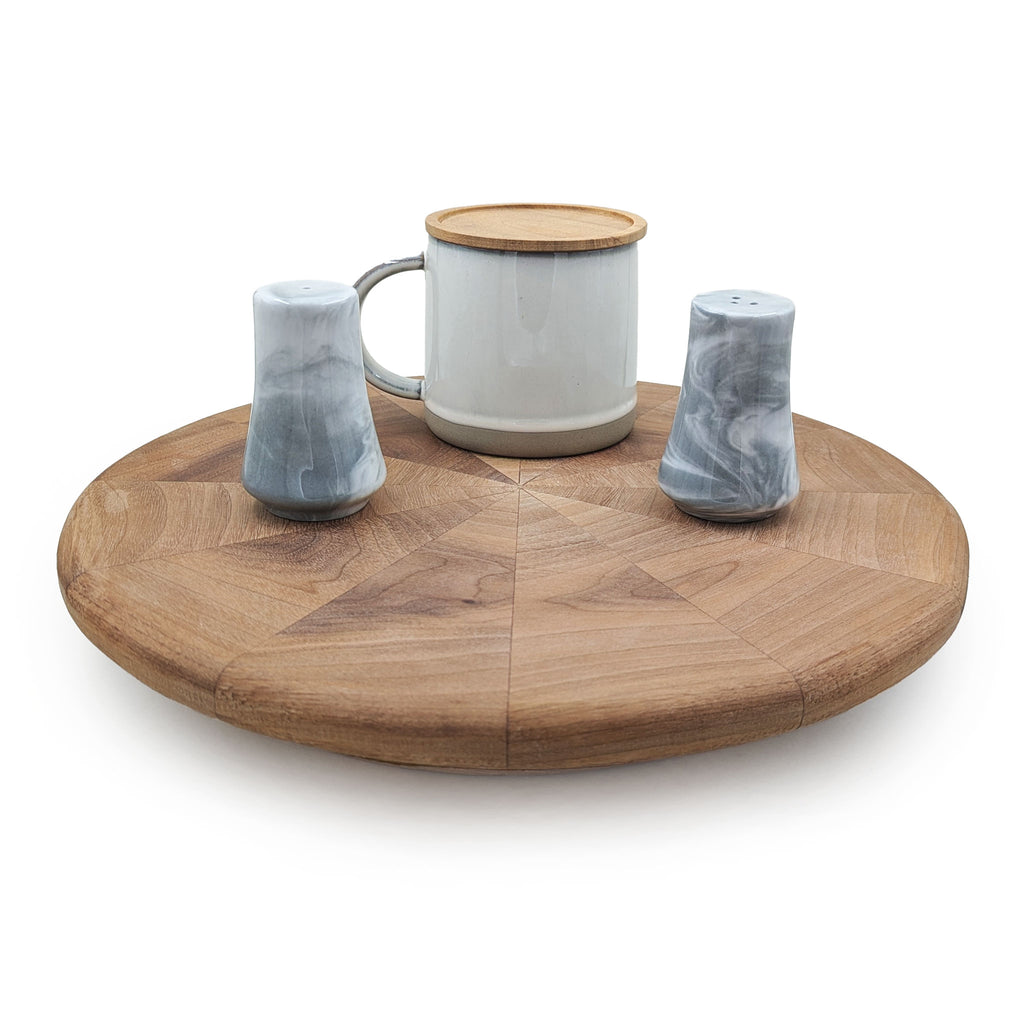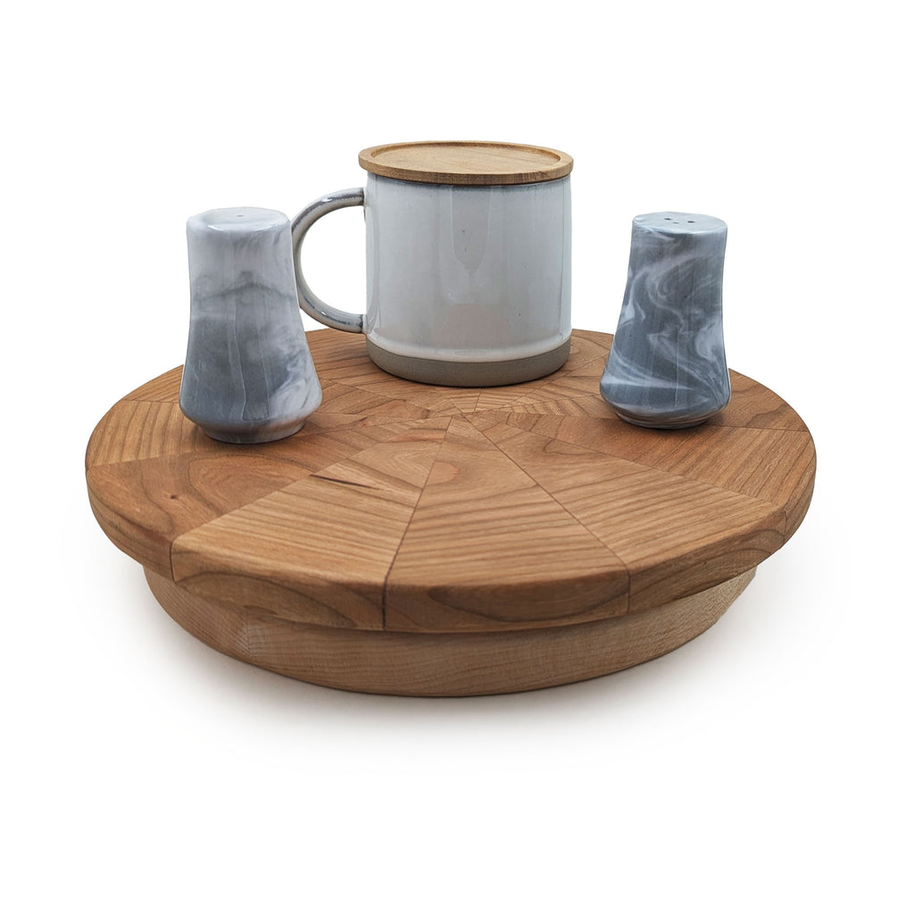 Un élément central pratique sur une table familiale ou un organiseur de placard pour les endroits difficiles d'accès. Cet accessoire de cuisine rotatif et artisanal est fabriqué par les artisans qualifiés du Centre Cummings. Accessoires en photo non inclus.